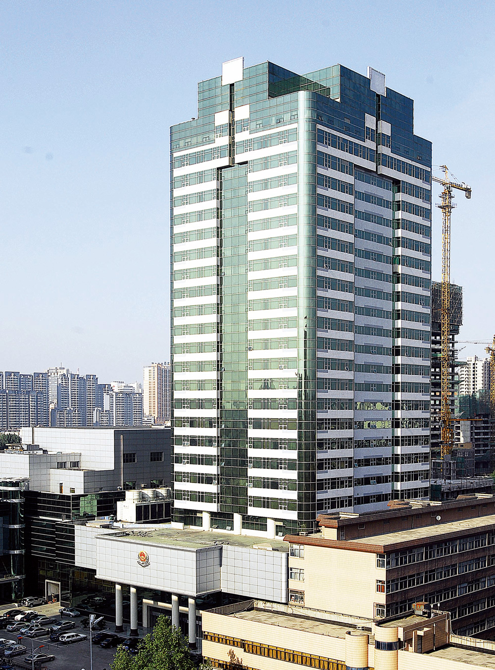 河北省国税局阳光大厦工程坐落于石家庄市主干道平安南大街27号,是集办公、培训、交流为一体的综合性项目,工程地下2层,地上主楼26层裙楼3层,总建筑面积41327㎡,建筑层高建筑总高度108m。主体为现浇钢筋混凝土框筒结构体系,裙房为混凝土框架结构。工程内装地面以磨光花岗岩、地面砖、木地板为主,室内采用彩色喷涂和吊顶工艺,室外湖蓝玻璃幕墙。该工程电气、通讯、办公、给排水、通风空调、消防等功能齐全、先进。公司1997年5月据竣工。
