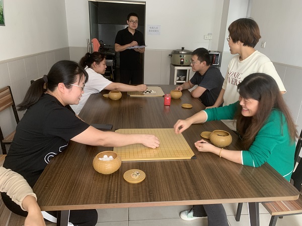 转场来到“以棋会友,其乐无穷”的五子棋比赛现场,比赛在自由组合的七个小组之间进行,两两一组对弈,(。)经过层层比拼,决出了比赛的获胜者。对弈过程中选手每走一步都深思熟虑,慎之又慎。低头看向棋盘,黑子白子交错之中,仿佛有无数的机关,横向、纵向、斜向的棋子令人眼花缭乱。“横看成岭侧成峰”,这些棋子复杂的排列更加考验了参赛者的观察能力。大家相互切磋交流,提高了棋技,也增进了彼此间的感情。