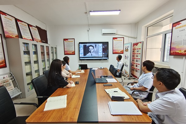 依托学习党史的重要载体——党史展览馆,党支部首先组织党员通过网络VR展馆参观了中共一大会址纪念馆,追寻红色足迹,重温中国共产党的诞生历程,领悟建党初心。随后,大家一起观看了撒贝宁、钟石、虹云三位中央广播电视总台播音员主持人,分别以“忠诚印寸心,浩然充两间”“初心与永恒”“真理的味道非常甜”为主题讲授伟大建党精神的视频。跟随着播音员主持人或慷慨激昂、或抑扬顿挫、或声情并茂地讲述,大家时而神情紧张,时而皱眉沉思,时而奋笔疾书,进一步理解了伟大建党精神产生的时代背景、典型人物、事件发展以及深远意义,深刻领会伟大建党精神是中国共产党的精神之源。