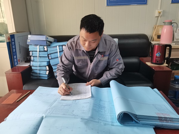 该项目前期规划及图纸信息量极少,现场条件复杂,各项资源匮乏。为尽快拉开“开工帷幕”,他积极配合项目经理,组织项目管理人员,统筹策划、迅速行动,积极协调人、材、机等各项资源。白天,他带领大家勘测现场,定位放线,场地平整,布设临水临电,对接甲方和政府相关部门;晚上他加班绘制施工现场平面布置图,编制前期策划及各项方案。最终,项目部仅用4天时间完成了“三通一平”、现场临建搭设、场地布置、施工机械材料及人员进场工作,喜获甲方感谢信,受到高度赞扬。