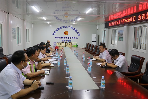 离开鹿泉改造提升项目后,张庆虎一行来到三分公司石家庄鹿泉体育场地下停车场项目。在基础施工的基坑边,张庆虎详细了解了项目规模、结构形式、造价以及现场工人数量等情况,叮嘱项目部抓紧抓好现场安全管控,确保安全生产。在会议室,项目部从工程概况、施工进度及疫情防控等方面进行了汇报,张庆虎详细询问了项目安全生产、降本等情况,还就现场劳务承包转型,逐步建立自有班组和专业队伍等劳务问题,与大家进行了探讨。张庆虎要求,项目部一要把安全放在首位,包括疫情防控,把各项制度措施抓实抓细抓到位,筑牢安全防线。二要把效益放在要位,严细管理,提前规划项目后期工作,把工作做细、做实。三是作风到位,要解放思想,把四建优良传统发扬光大,让四建的明信片闪闪发光。