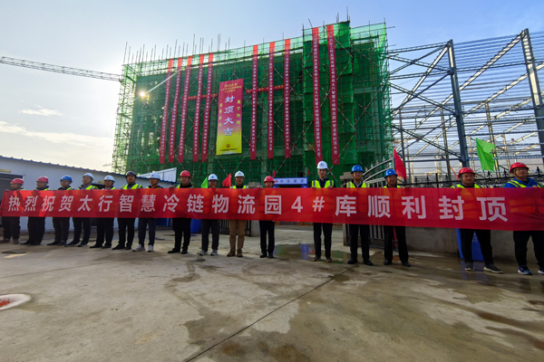 七分公司太行智慧冷链物流园项目4#常温库B区主体封顶获好评