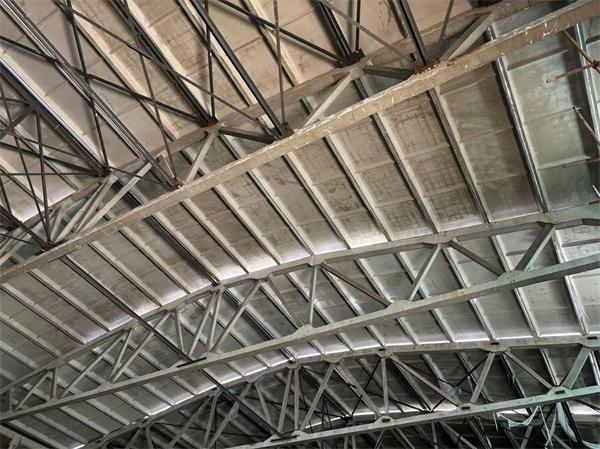 预制过程中,从前期策划到生产队伍的选择,从材料调配到现场人员配置,每一个环节项目部都周密安排。混凝土浇筑时,为减少占地面积,将多榀屋架叠在一起浇筑,并增加人员、机械投入,缩短每榀屋架的施工持续时间,更好的控制混凝土浇筑质量。针对预应力折线形屋架尺寸超大且薄、内部预应力大、运输不便等难题,项目部采用综合吊装法,从平房仓山墙处开始,第一榀屋架与山墙进行连接,随后沿平房仓长度方向依次进行屋架吊装。吊装时选用2台80吨汽车吊同时进行作业,聘请经验丰富的河北四建现场指挥,安管人员全程监护,确保施工安全。