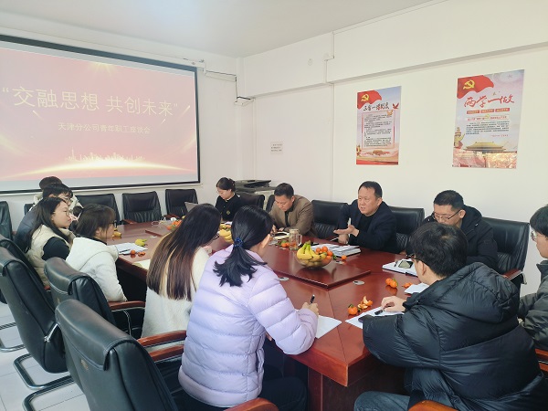 为进一步搭建青年职工与分公司领导间交流与分享的平台,倾听青年职工在工作、生活中的想法与困惑,激发他们的创新思维和工作热情,促进青年职工与企业共同发展,2025年1月23日上午,天津分公司在会议室召开了以“交融思想,共创未来”为主题的青年职工座谈会。经理李广涛、党支部书记臧联合、主任经济师张新广以及9名青年职工齐聚一堂,围绕职业发展、工作感悟等话题展开深入交流。